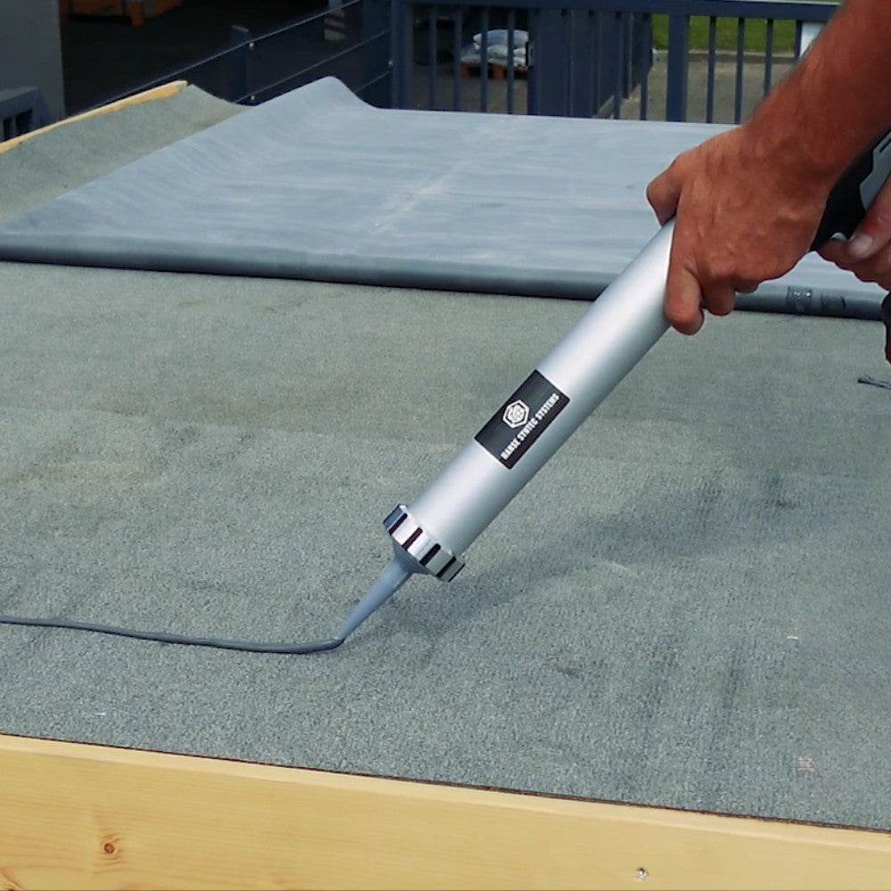 Die einseitige Applikation ermöglicht eine sofortige Weiterverarbeitung ohne Ablüften – das spart Zeit und erhöht die Verarbeitungssicherheit. Bei der Flächenverklebung wird der Kleber im Abstand von ca. 10 cm in Raupen aufgetragen. Zwischenräume ermöglichen das Entweichen von Feuchtigkeit und begünstigen die feuchtigkeitsvernetzende Aushärtung, z. B. auf Altbitumen.