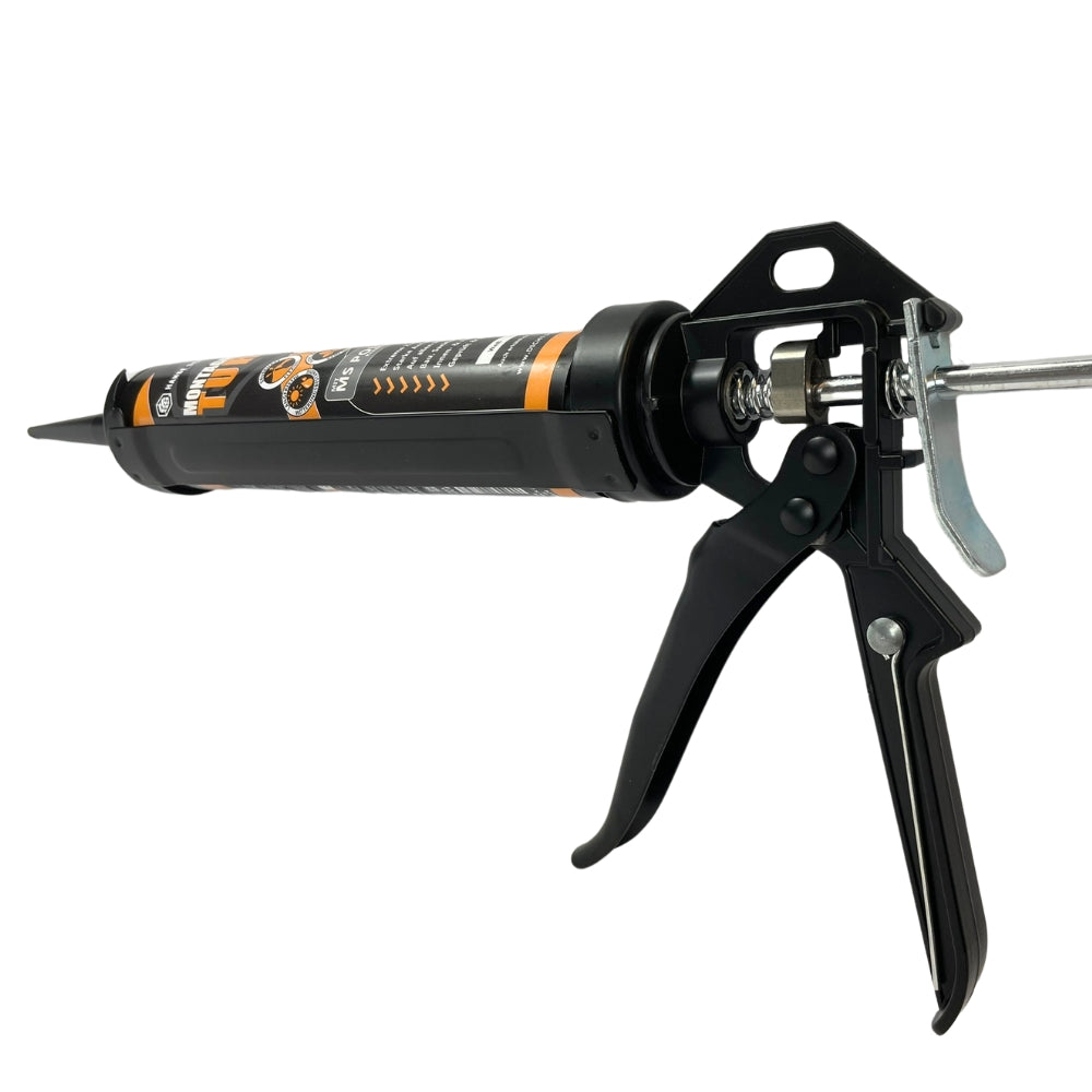 Die HSS PREMIUM Kartuschenpresse ist für alle gängigen Kartuschen bis 310 ml geeignet und überzeugt durch eine hochwertige Metallkonstruktion mit 360° drehbarer Kartuschenhalterung. Ideal für professionelles Arbeiten bei Dicht- und Klebstoffen – selbst bei zähflüssigem Material. Die integrierte Reinigungsnadel im Griff erleichtert das Entfernen von Rückständen, während die Federrückstellung mit Entlastungstaste ein Nachtropfen verhindert. Dank der starken 24:1 Übersetzung ist die Presse auch für Injektionsmörtel geeignet.